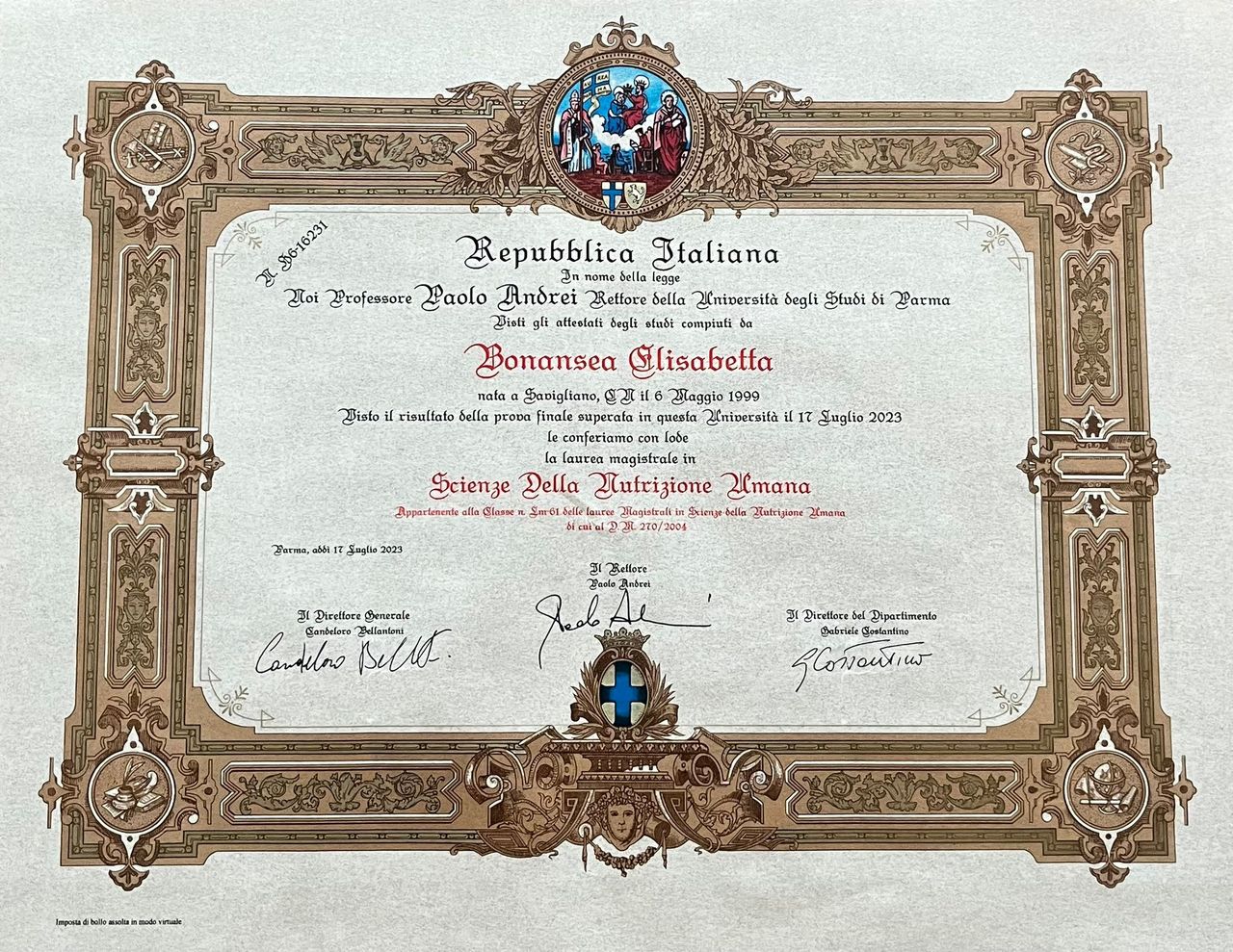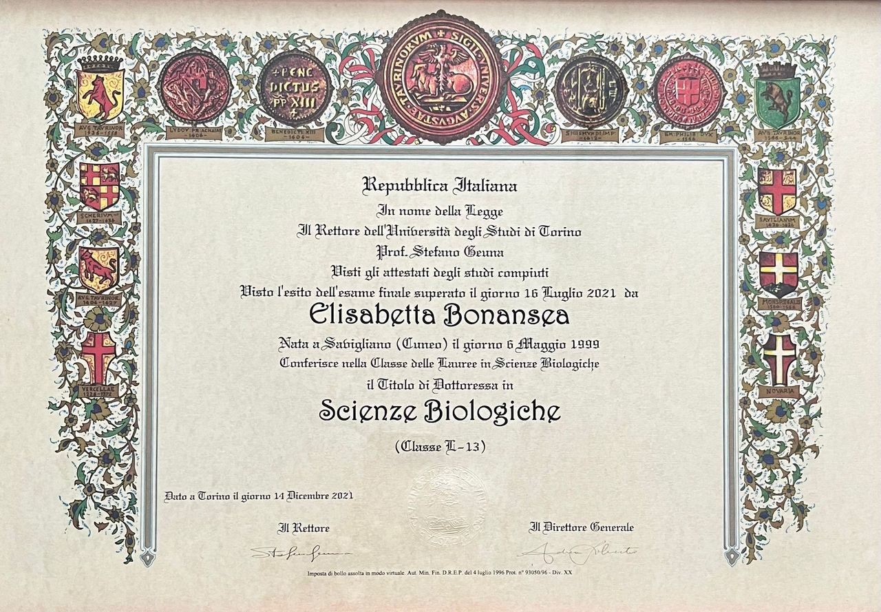 Sono una Biologa Nutrizionista, laureata magistrale in Scienze della Nutrizione Umana e regolarmente iscritta all'ordine dei Biologi del Piemonte, Liguria e Valle d'Aosta.