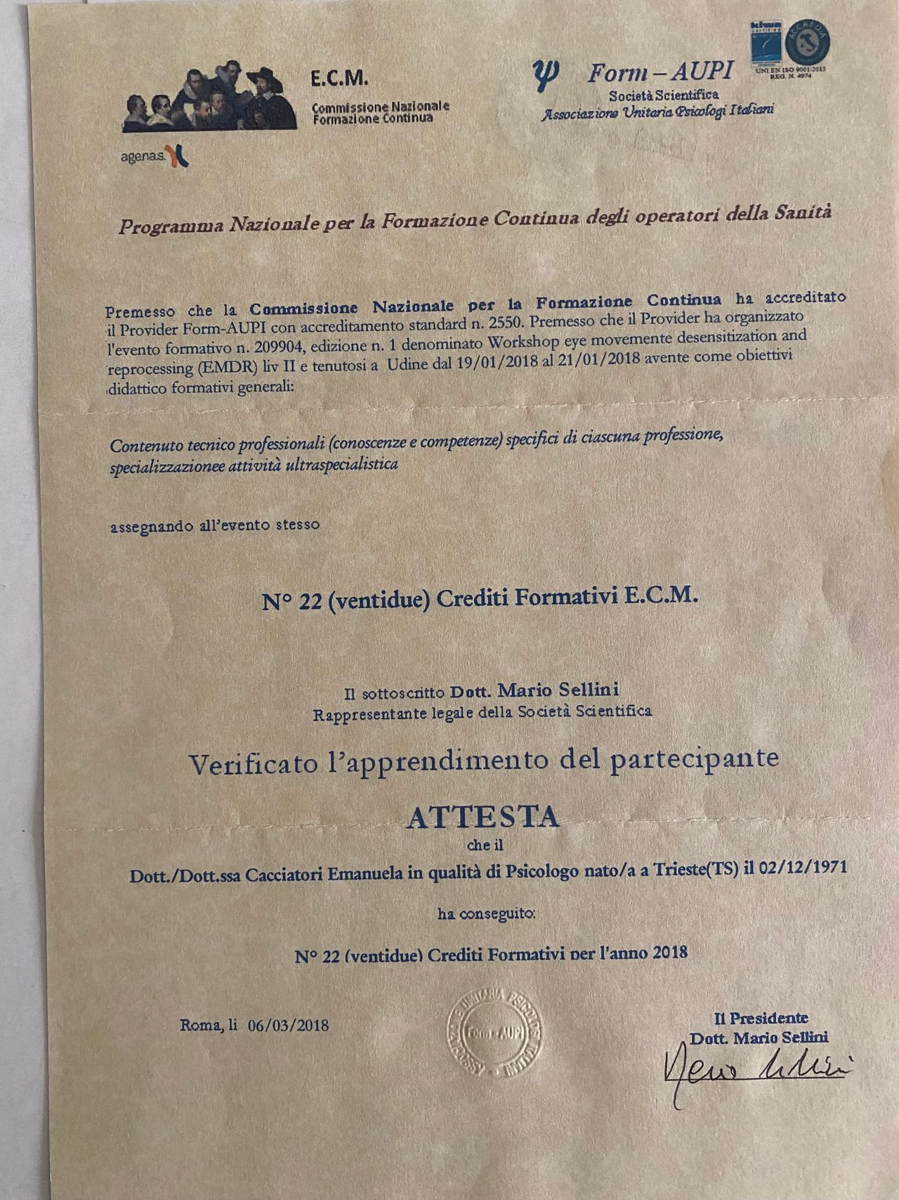 Dott.ssa Emanuela Cacciatori