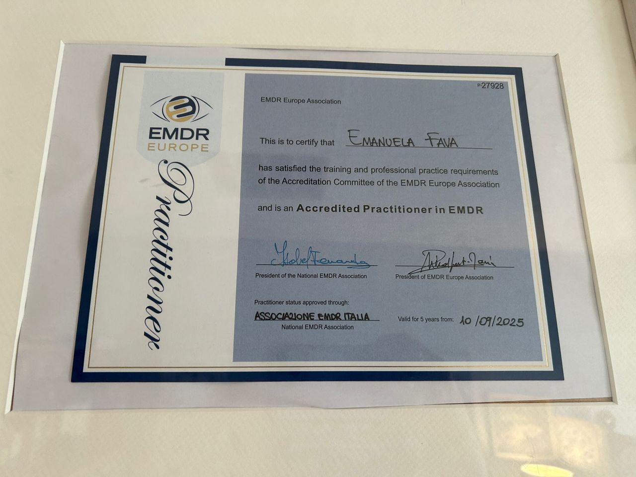 Sono una terapeuta EMDR (Eye movement Desensitization reprocessing) e socia dell'associazione EMDR Italia.