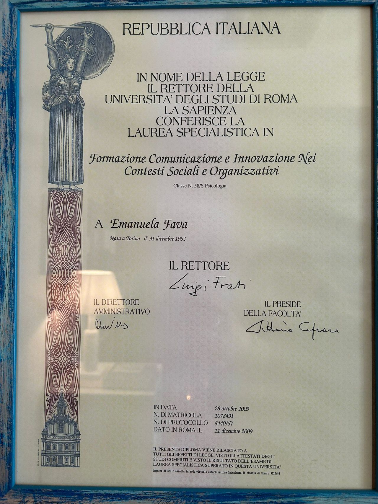 Ho svolto i miei studi universitari, tra Torino e Roma, inizialmente concentrandomi su alcune tematiche della psicologia del lavoro ed in seguito approfondendo l'ambito clinico.