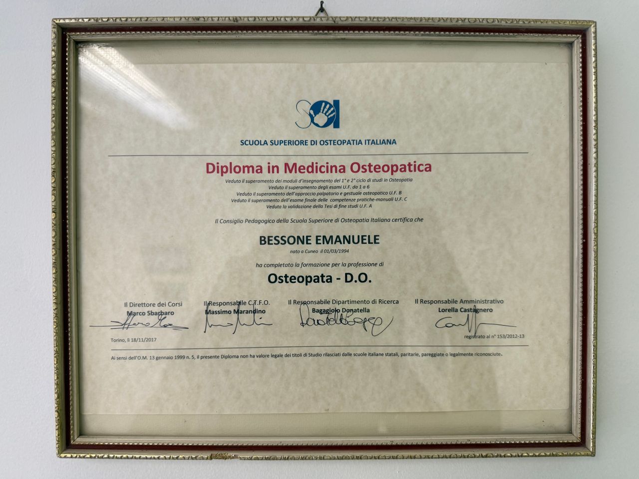 Grazie all’integrazione della laurea in fisioterapia, riesco a dare gli esercizi giusti che diventano fondamentali nel mantenere i progressi ottenuti durante la seduta. Buoni esercizi e a presto.