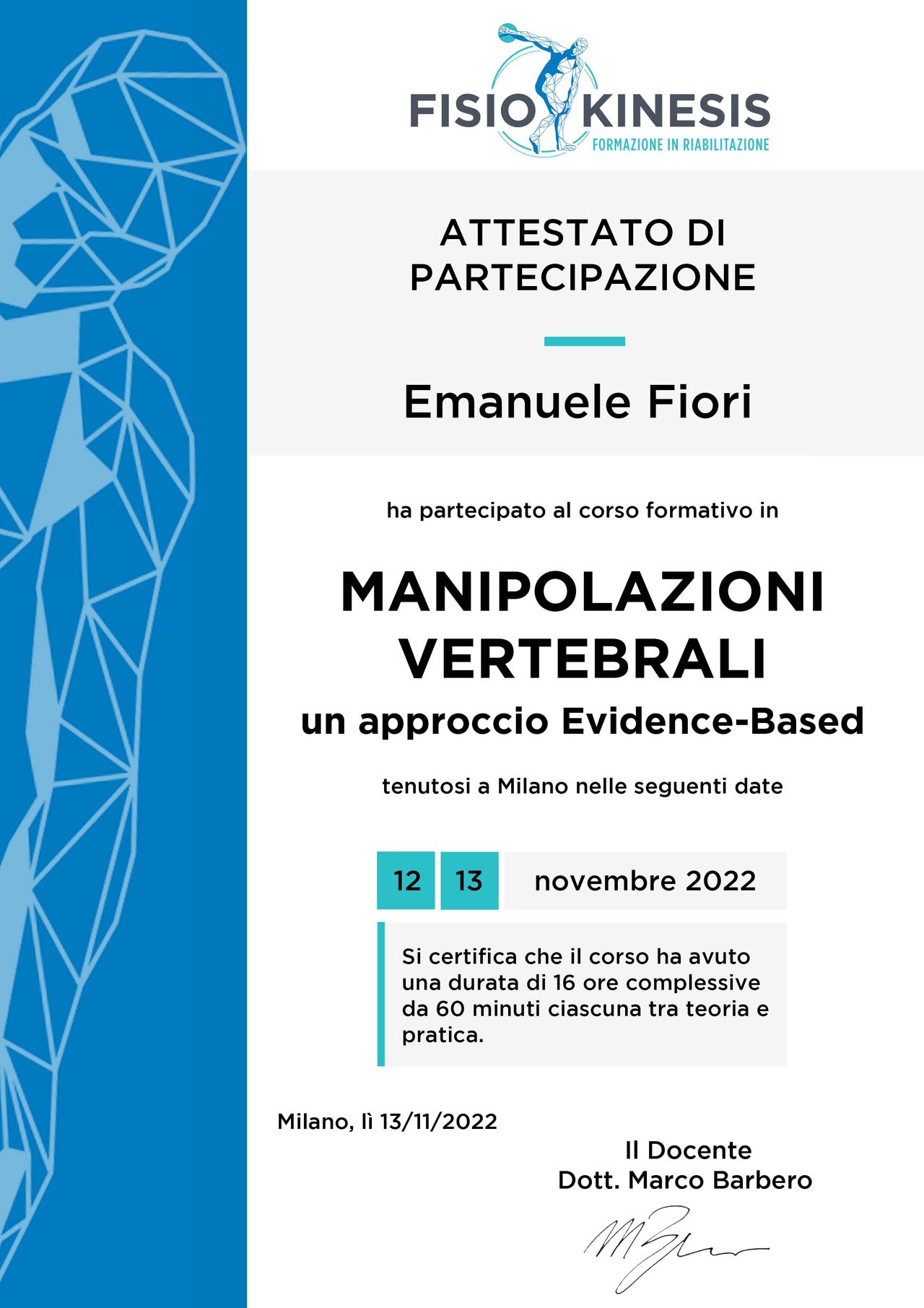 Emanuele mi ha rimesso letteralmente in piedi dopo un grave infortunio ai legamenti della caviglia. Grazie a lui in pochi mesi sono riuscito a tornare a fare tutto ciò che facevo prima, lavorando anche su punti deboli come l'equilibrio.