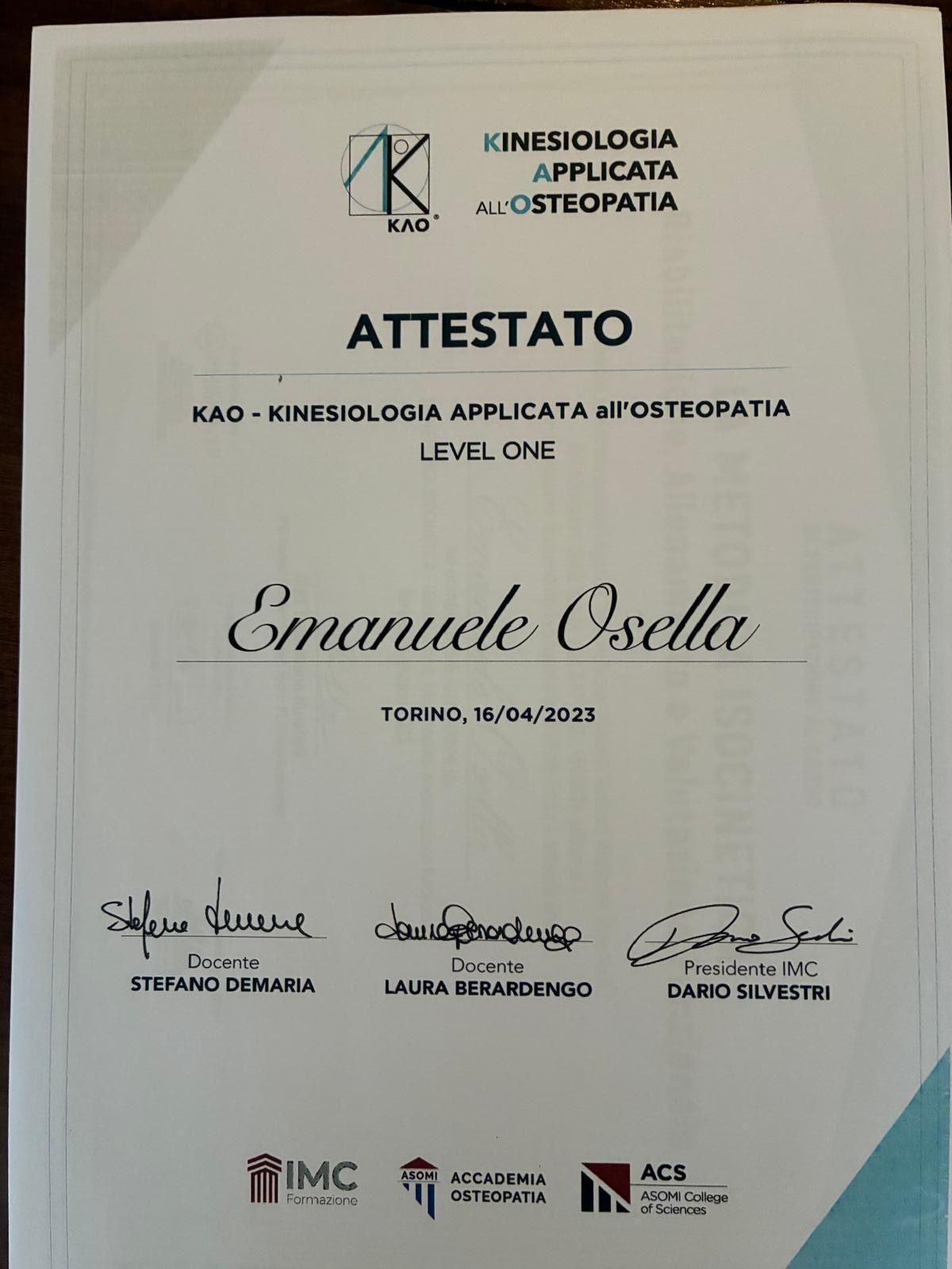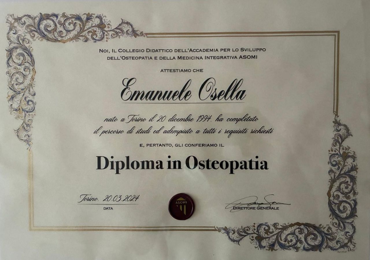 Mi chiamo Emanuele Osella e sono un Osteopata DO MROI e Laureato Triennale e Magistrale in Scienze Motorie, conseguita presso l'Università degli Studi di Torino.