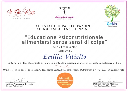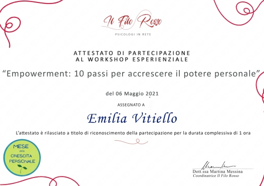 Un sincero grazie alla dottoressa Emilia Vitiello. Ho subito notato il suo entusiasmo, la sua empatia e comprensione. Sia lei che lo studio trasmettono e danno subito una bella accoglienza e professionalità. Mi è stata di notevole aiuto.