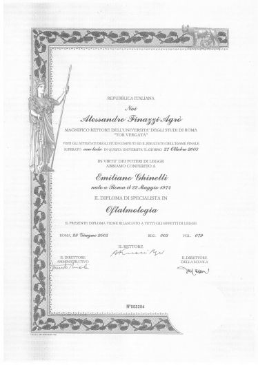 Competenze professionali: Oftalmologia; Chirurgia Oculare; Microchirurgia; Rigenerazione Tessutale. Ricerca di base sulle Neurotrofine; Dimensionamento, brevettazione ed applicabilità clinica delle Biotecnologie in oftalmologia.