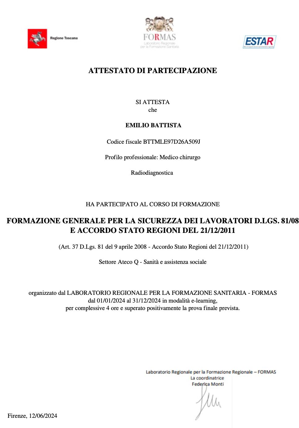 AO S. Donato, Arezzo, UOC Radiologia: internal University network program (3 mesi)