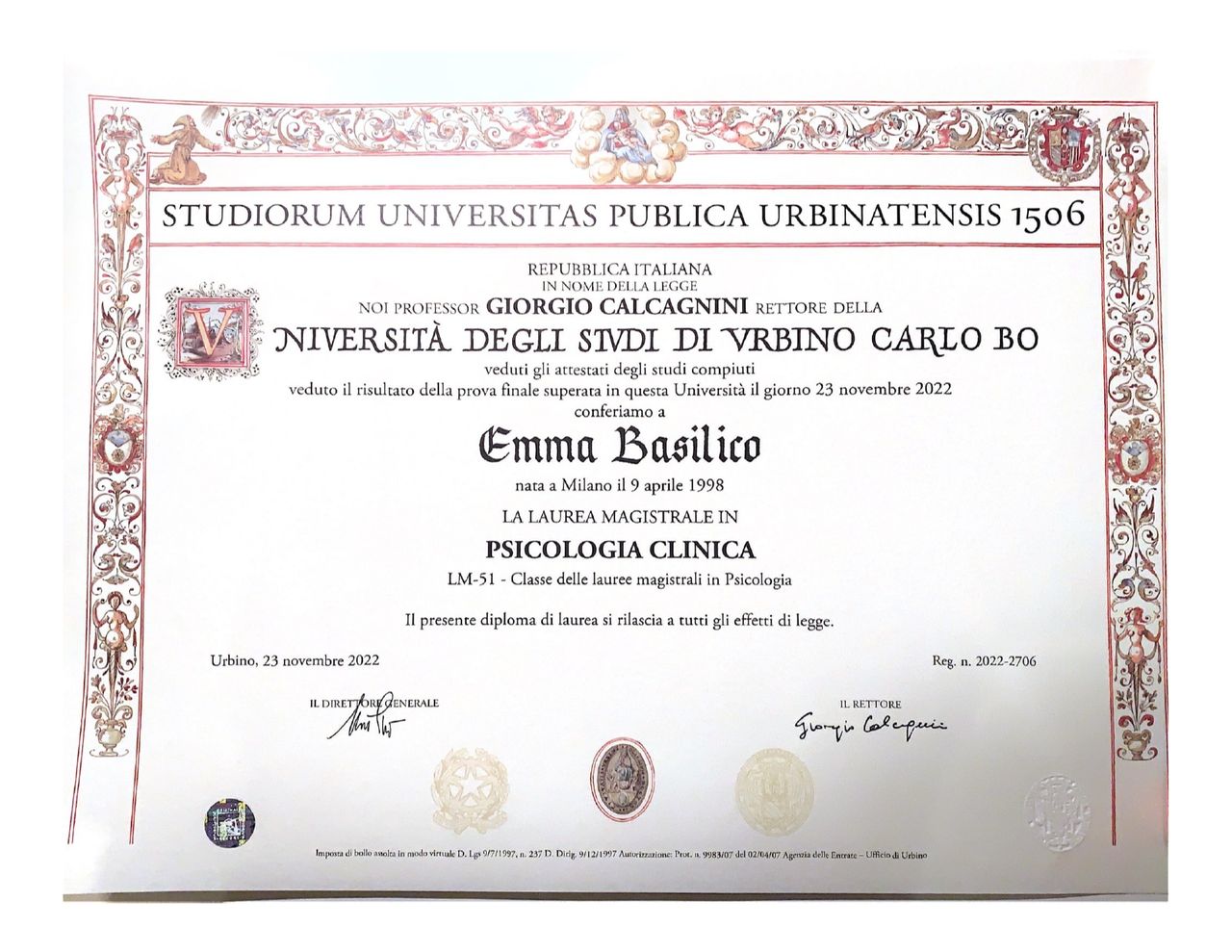 Mi sono laureata in Psicologia Clinica presso l’Università degli Studi di Urbino, per poi proseguire con un Master di secondo livello. Da due anni frequento la Scuola di Specializzazione in Psicoterapia Integrata (SPI) di Milano.