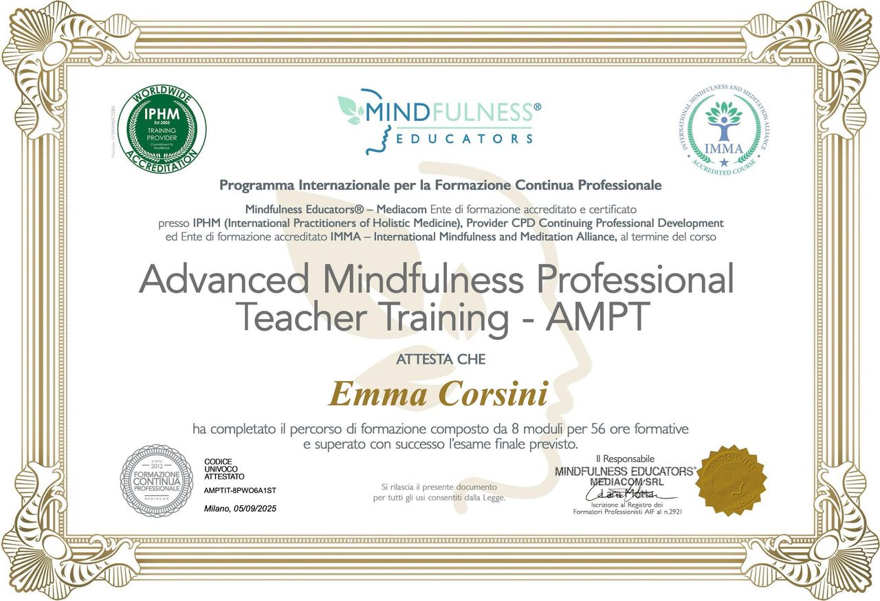 Sono la dott.ssa Emma Corsini, psicologa clinica iscritta all'Ordine degli psicologi della Lombardia, n. 31525.