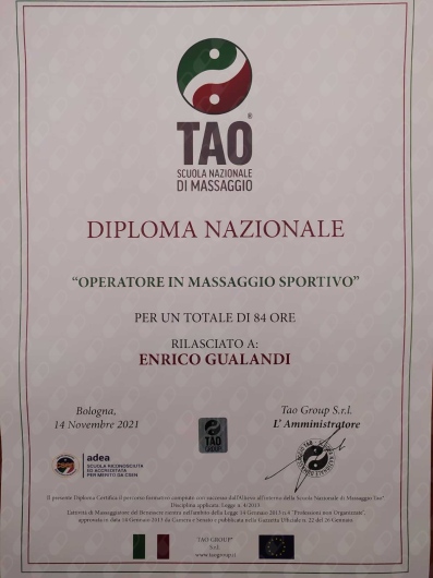 Ho inoltre conseguito il diploma come Operatore in Massaggio Sportivo e come Istruttore di Ginnastica Posturale.