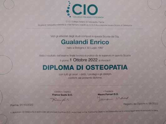 Mi sono laureato in Scienze Motorie e Sportive presso l'università 'Alma Mater Studiorum' di Bologna, contemporaneamente ho seguito il corso di studi di Osteopatia presso il 'Collegio Italiano di Osteopatia' a Parma per diplomarmi quindi in Osteopatia.