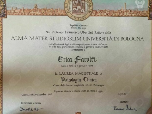 La Dottoressa Farolfi è stata fondamentale per la mia crescita personale, grazie al percorso intrapreso mi sto riscoprendo e collegando tante cose dimenticate. Ho intrapreso il percorso con la Dottoressa già da un po e devo dire che mi sto trovando davvero bene, mi sento meglio rispetto a prima di iniziare il percorso anche se so che ci vorrà ancora tanto tempo. Lo consiglio a tutti. La Dottoressa è presente, puntuale e sempre attenta alle mie esigenze. Mi sento davvero capita. Grazie.
