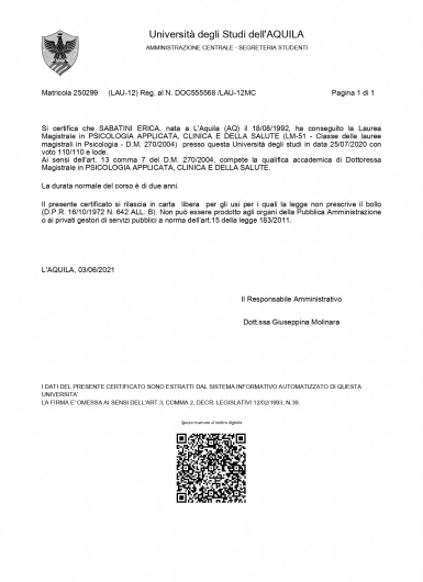 Lavorare con la dott.ssa Sabatini è stata un’esperienza altamente trasformativa. La sua capacità di ascolto, empatia e professionalità sono davvero uniche. Durante il nostro tempo insieme, mi ha aiutata a superare momenti davvero difficili, guidandomi con competenza e delicatezza. Ogni incontro con lei è stato uno spazio sicuro in cui sentirmi capita e supportata. Consiglio vivamente il suo supporto a chiunque stia cercando un punto di riferimento autentico e preparato. Dott.ssa, grazie di cuore per tutto quello che fa!