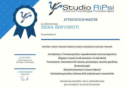 Mi sono laureata a pieni voti in Psicologia Clinica e di Comunità presso l'Università di Bologna, con una tesi dal titolo "Gli aspetti psicologici nella sclerosi multipla". Ho completato il tirocinio presso il Dipartimento di Dipendenze Patologiche e il Consultorio familiare dell'ASUR Marche venendo a contatto con le realtà di affido, adozione e dinamiche familiari disfunzionali. Ho preso parte al gruppo di studio Jonas "i nuovi sintomi nella società contemporanea - una lettura psicoanalitica" e ai lavori del convegno Jonas "anoressia, bulimia e attacchi di panico - il disagio della civiltà contemporanea". Negli ultimi anni ho frequentato corsi di livello base e avanzato di psiconcologia, mi sto perfezionando in mediazione familiare e nella mindfullness. Ho inoltre focalizzato la mia formazione sul vissuto della perdita e dell'abbandono. Mi occupo di consulenza e sostegno psicologico a coloro che sono vittime di relazioni abusanti, maltrattanti e/o ad elevata conflittualità di coppia, e nel contesto familiare e lavorativo. Svolgo la libera professione a Pesaro e Online, occupandomi prevalentemente di consulenza e/o percorsi di sostegno psicologico, abilitazione, riabililtazione: alle donne e alle coppie che hanno vissuto l'esperienza di una perdita del proprio bambino durante la gravidanza, il parto o dopo la nascita; alle persone che convivono con una patologia cronica e/o degenerativa e ai loro familiari; a chi sta affrontando una separazione. Promuovo il benessere psicologico dell'individuo e della coppia (potenziamento delle life skills personali e sociali, gestione delle emozioni, aumento dell'autostima e miglioramento delle abilità di comunicazione). Mi sono formata in Terapia Seduta Singola (TSS), un metodo (non un approccio) che permette di massimizzare l'efficacia di ogni singola seduta, così che il percorso di sostegno psicologico duri solo ed esclusivamente il tempo necessario. A volte è possibile raggiungere l'obiettivo prefissato anche in un unico incontro. Ho una passione per la psicologia positiva e credo nel potere trasformativo della parola. Mi piace parlare di gratitudine, ottimismo, resilienza e sono certa della capacità innata, in ciascuno di noi, di far fiorire la propria felicità.