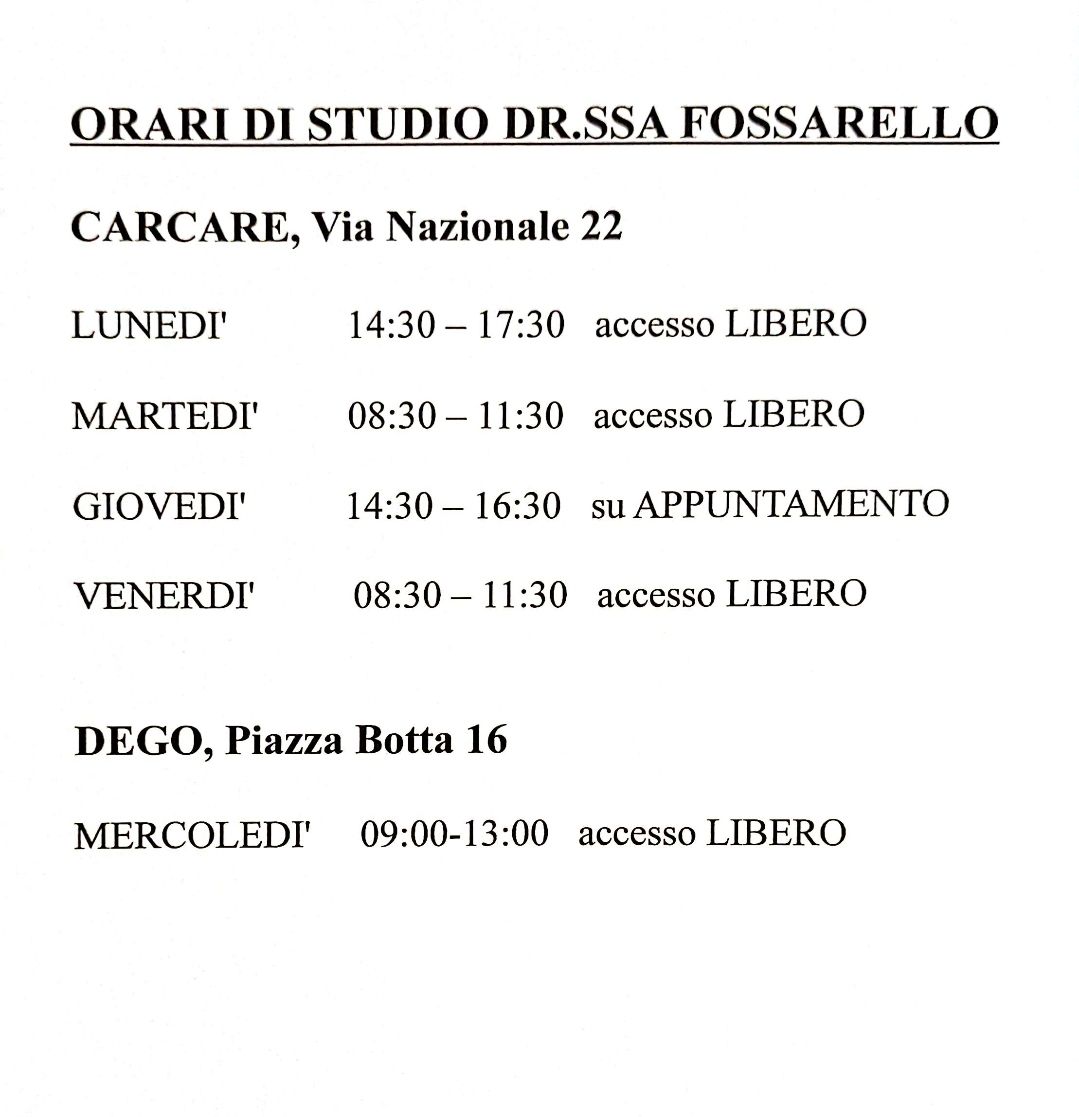 La Dr.ssa Fossarello Erika riceve nello studio di Carcare e di Dego secondo gli orari e le modalità di accesso indicate nella foto.
