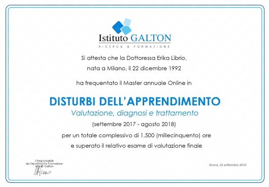 Ho inoltre ampliato la mia formazione conseguendo un Master sui Disturbi Specifici dell’Apprendimento (DSA), fornendo supporto scolastico e psicologico a bambini e ragazzi con difficoltà di apprendimento.