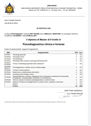 Ho fatto il mio primo colloquio con la dottoressa Erika perche' era l'unica con le recensioni con il piu' alto tasso di primi colloqui e tutti positivi e ho voluto provare anche se molto giovane e a fine seduta gli ho detto che le persone che avevano fatto la recensione avevavo ragione le sue doti al primo impatto il saper ascoltare con attenzione , il farti domande specifiche per capire i problemi nei dettagli, la sua semplicita' nel tenerti a tuo agio e competente al 100% nel suo lavoro anche se giovanissima grazie per adesso sono sicuro che con lei ne verro' fuori e piu' forte di prima