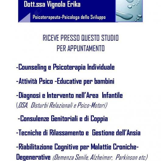 Hai avuto una visita con Dott.ssa Erika Vignola? Condividi quello che pensi. Grazie alla tua esperienza gli altri pazienti potranno scegliere il miglior dottore per loro.