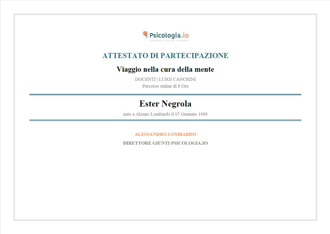 Piacere, sono la Dott.ssa Ester Negrola, Psicologa e specializzanda in Psicoterapia a orientamento sistemico-relazionale presso l’Istituto EMMECI di Torino.