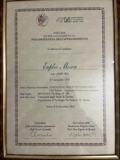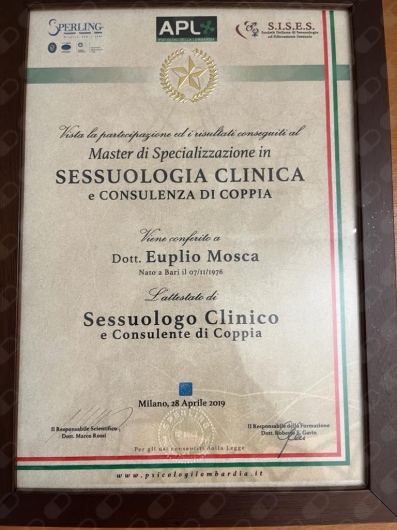 Psicologo, sessuologo, consulente per la coppia e la famiglia, ipnologo, psicopatologo dell'apprendimento scolastico, iscritto alla scuola di specializzazione S.E.F funzionale corporea di Padova. Mi occupo in particola di percorsi di auto consapevolezza di se che orienta il paziente alla conoscenza del proprio organo guida (il cervello) , prendendo conoscenza delle sue risorse, delle sue qualità e potenzialità, ma soprattutto degli inganni e dei limiti dello stesso. Attraverso percorsi personalizzati della durata mediamente di 15 sedute, il paziente prende possesso delle redini della sua vita imparando , non solo a gestire paure, ansie, cambiamenti d'umore, relazione con se stesso e l'altro/a, ma in modo particolare a direzionare la propria vita verso il desiderabile e non il temibile facendo, con il proprio possibile. Imparare quindi ad avere strumenti non opinabili che da al cavaliere capacità decisionale e al proprio cavallo ,la direzione per la realizzazione del desiderio. In questo percorso il paziente impara a saper camminare su un pavimento di incertezze ove il desiderio si realizza, quando sono disposto alla sua non realizzazione.
