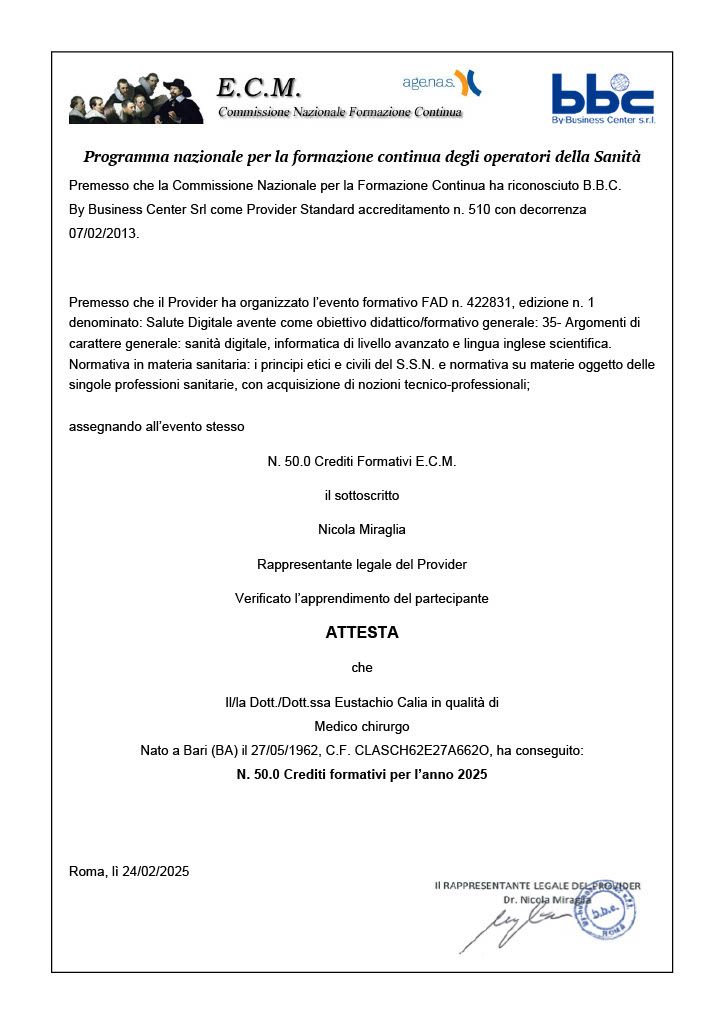 • Studio di Neurologia e Psichiatria Dr. Eustachio Calia • prima visita neurologica •