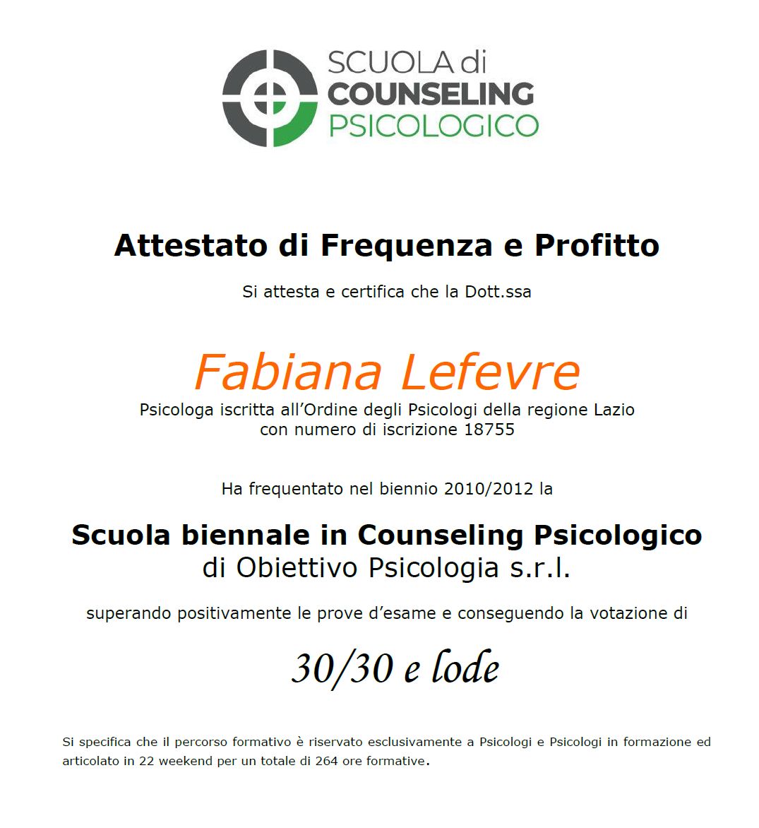 La Dott.ssa Fabiana Lefevre è una professionista davvero speciale. Fin dal primo incontro mi sono sentita accolta, ascoltata e mai giudicata. Ha una grande empatia e sa mettere a proprio agio, creando uno spazio sicuro dove potersi aprire con tranquillità.