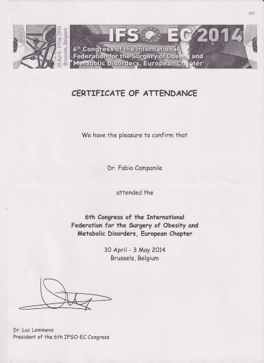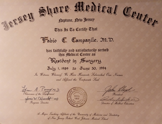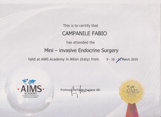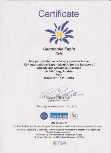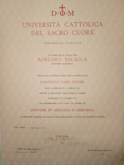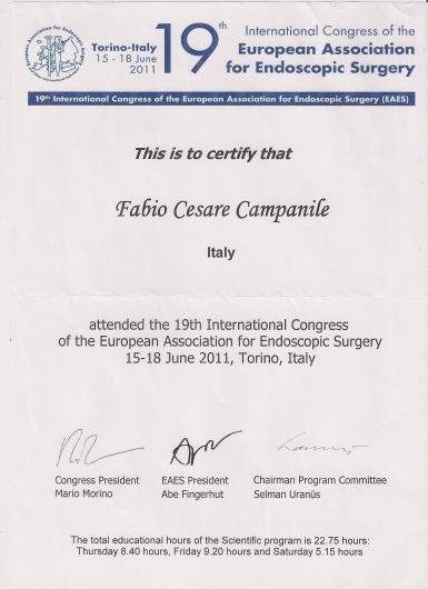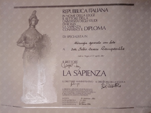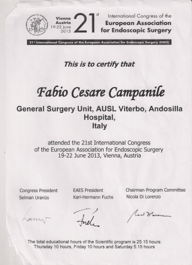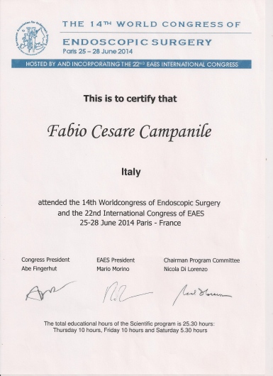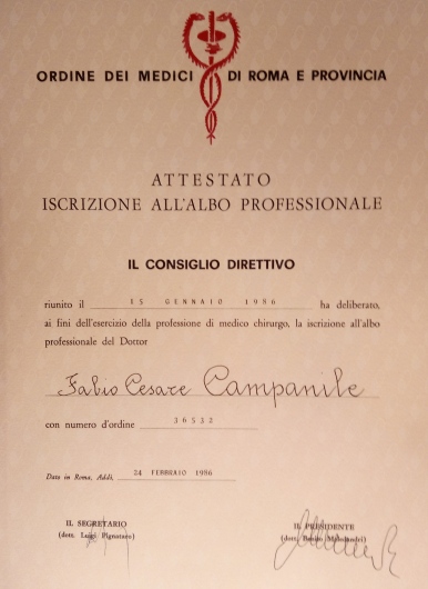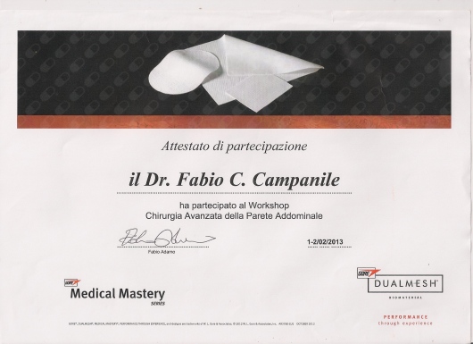 Fabio Cesare Campanile è nato a Perugia nel 1961. Ha studiato in Italia e negli Stati Uniti, conseguendo la laurea in Medicina e Chirurgia (1985), poi i titoli di Specialista in Chirurgia Generale (1990) e di Diplomate of the American Board of Surgery (1995), ed infine il Master in Economia Pubblica ad indirizzo sanitario (2003). Negli anni tra il 1989 e il 1994 ha lavorato presso il Monmouth Medical Center a Long Branch, New Jersey. Erano proprio gli anni nei quali nasceva la chirurgia laparoscopica ed il Centro presso il quale lavorava si era posto subito all’avanguardia in quel settore che avrebbe rapidamente rivoluzionato il mondo chirurgico. In quegli anni iniziò anche ad interessarsi di chirurgia dell’obesità. Da allora la chirurgia mini-invasiva ha costituito una delle sue principali linee di attività. Membro del Consiglio Direttivo della Società Italiana di Chirurgia Endoscopica per molti anni, membro della Società Italiana per la Chirurgia dell'Obesità (fin dalla fondazione), European Association for Endoscopic Surgery, World Society for Emergency Surgery, Società Italiana Chirurgia, Associazione Chirurghi Ospedalieri Italiani, Società Italiana di Chirurgia Colorettale, del Italian Society for Hernia and Abdominal Wall Surgery, Fellow of the American College of Surgery. E' autore di numerose pubblicazioni su riviste internazionali vedi https://www.ncbi.nlm.nih.gov/labs/bibliography/fabio%20cesare.campanile.1/bibliography/public/ e https://scholar.google.it/citations?user=q_OuyCkAAAAJ&hl=it&oi=ao) e relatore a numerosi congressi scientifici. Oggi dirige la Struttura Complessa di Chirurgia dell’Ospedale di Civita Castellana nel quale aprì, nel 1999, il centro di chirurgia dell’obesità. Effettua abitualmente numerosi interventi di chirurgia addominale e chirurgia laparoscopica avanzata, tra i quali molti di chirurgia bariatrica, ma anche di flebologia e chirurgia proctologica.