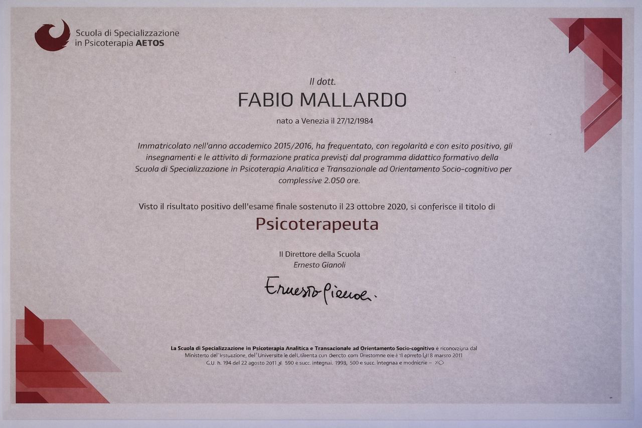 Mi chiamo Fabio Mallardo, sono psicologo e psicoterapeuta.