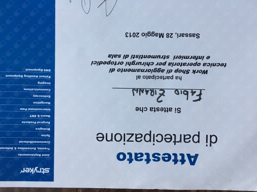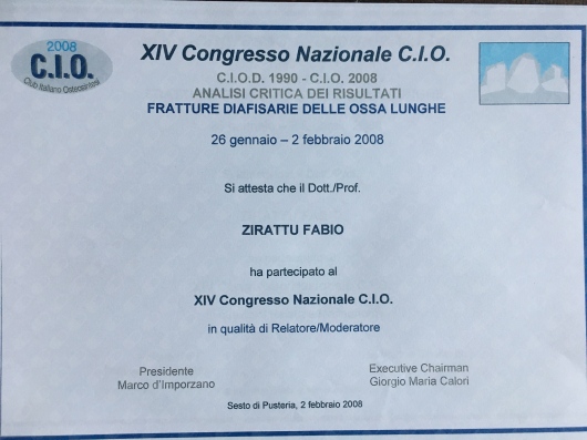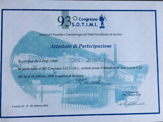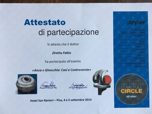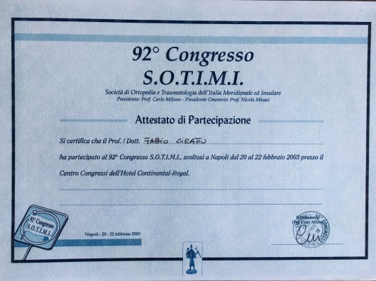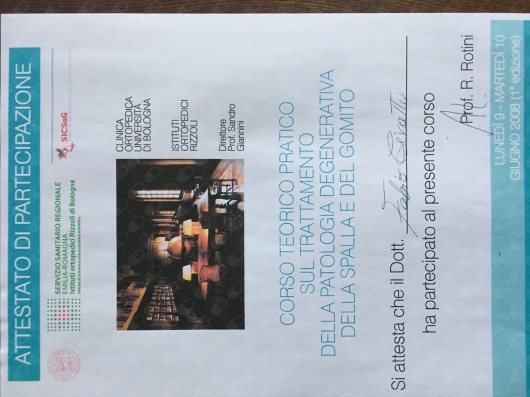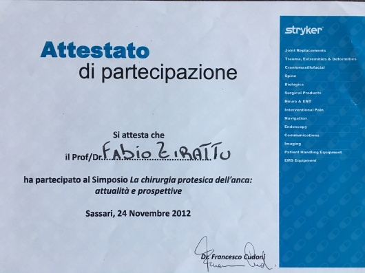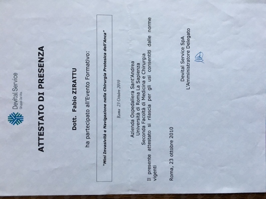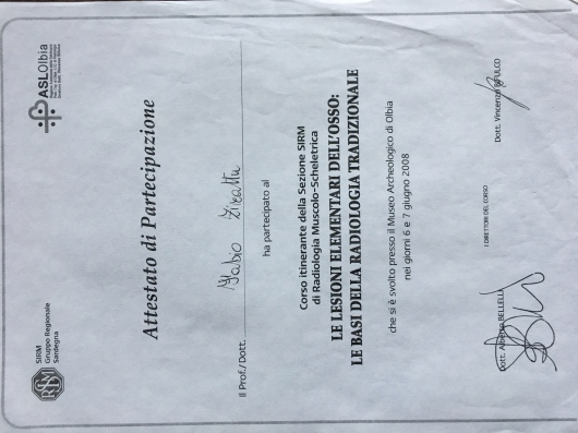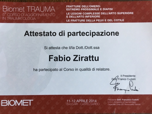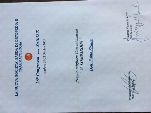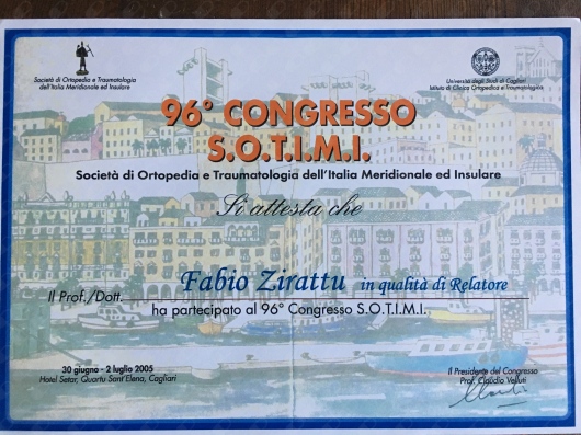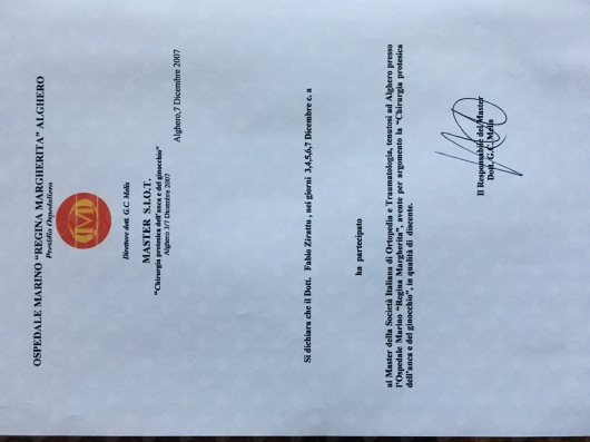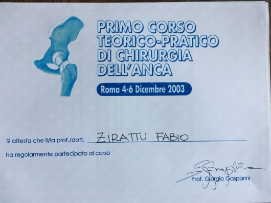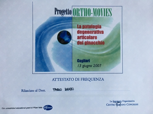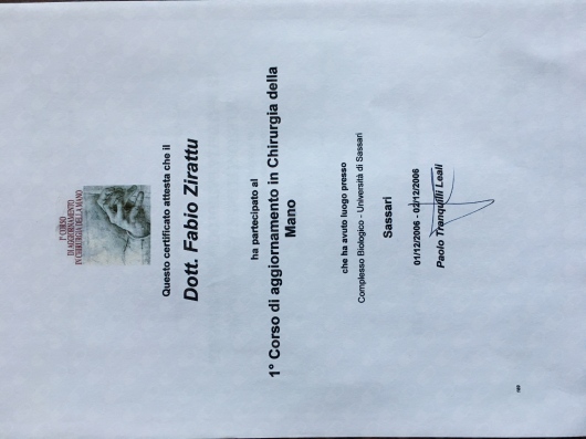 Il 06.11.2006 consegue la Specializzazione in Ortopedia e Traumatologia presso la Clinica Ortopedica di Sassari, riportando la votazione di 50/50 e lode.