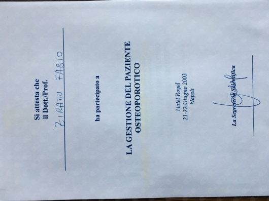 Nell’anno accademico 1996-97 è allievo interno dell’Istituto di Anatomia Umana Normale, diretto dal Prof. A.Montella.