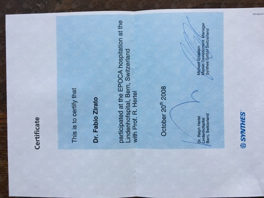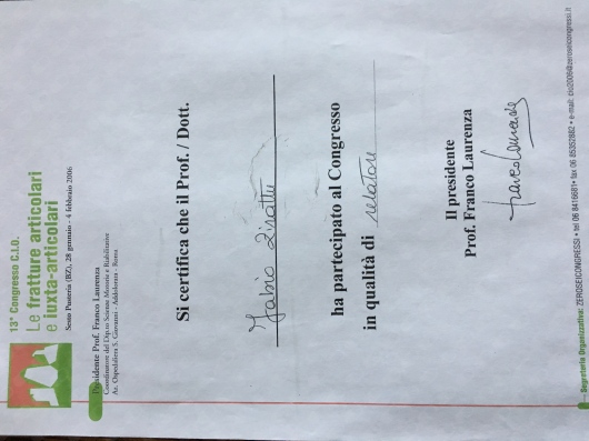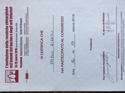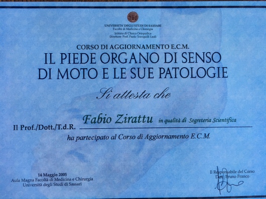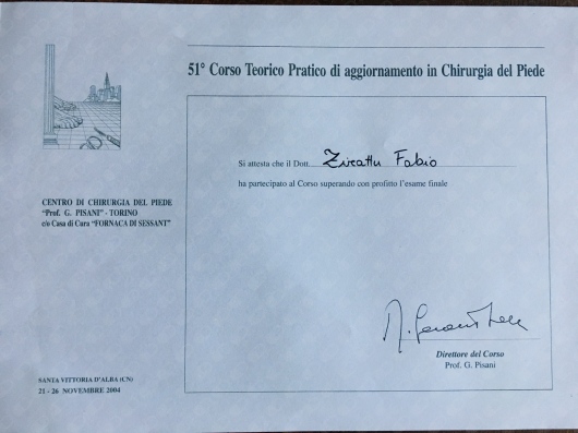 Nel Maggio 2005 frequenta il centro di Chirurgia del Piede annesso alla casa di Cura “Fornaca di Sessan” diretto dal Prof. G.Pisani