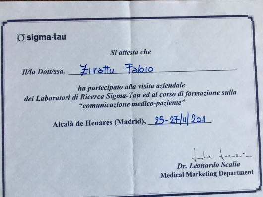 Nell’aprile del 2002 ( ultima sessione posticipata di laurea dell’anno accademico 2000-01 ) consegue,al sesto anno in corso, la laurea in Medicina e Chirurgia presso l’università di Sassari riportando la votazione di 106/110.