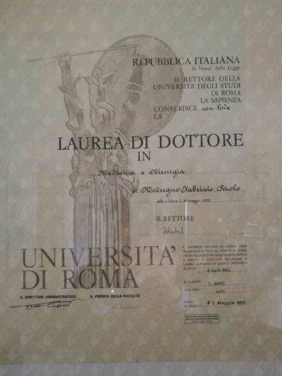 Inoltre si specializza in Oftalmologia a Roma "La Sapienza" il 14/07/1988.