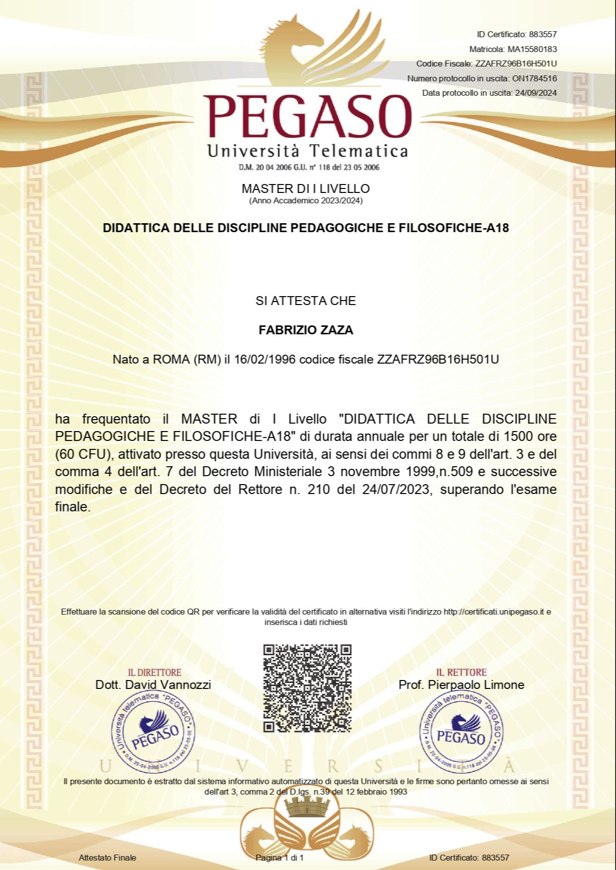Sono uno psicologo clinico iscritto all'ordine degli Psicologi del Lazio; attualmente sto svolgendo il corso di specializzazione in psicoterapia presso la Scuola di Psicoterapia Analitica Individuale e di Gruppo (SPAIG).