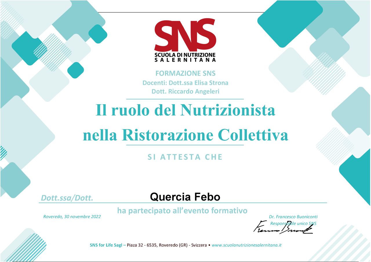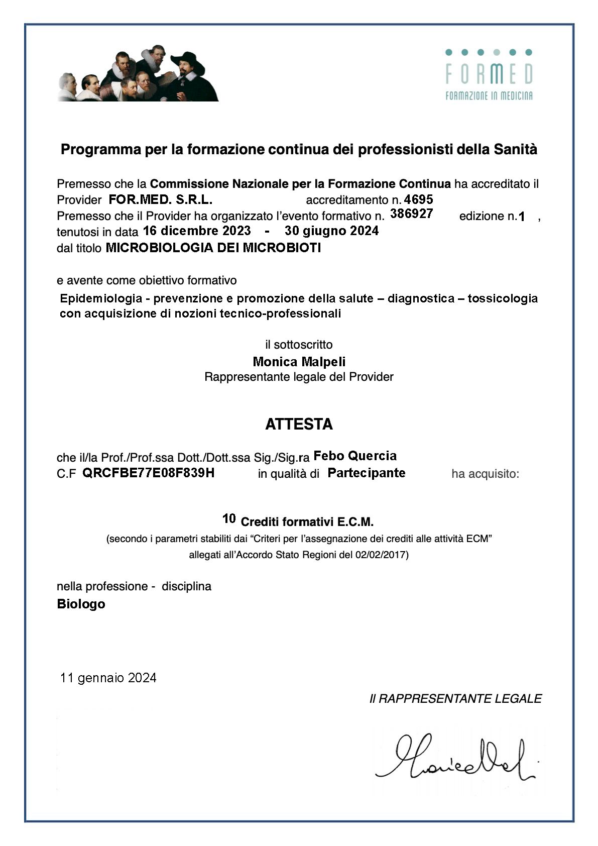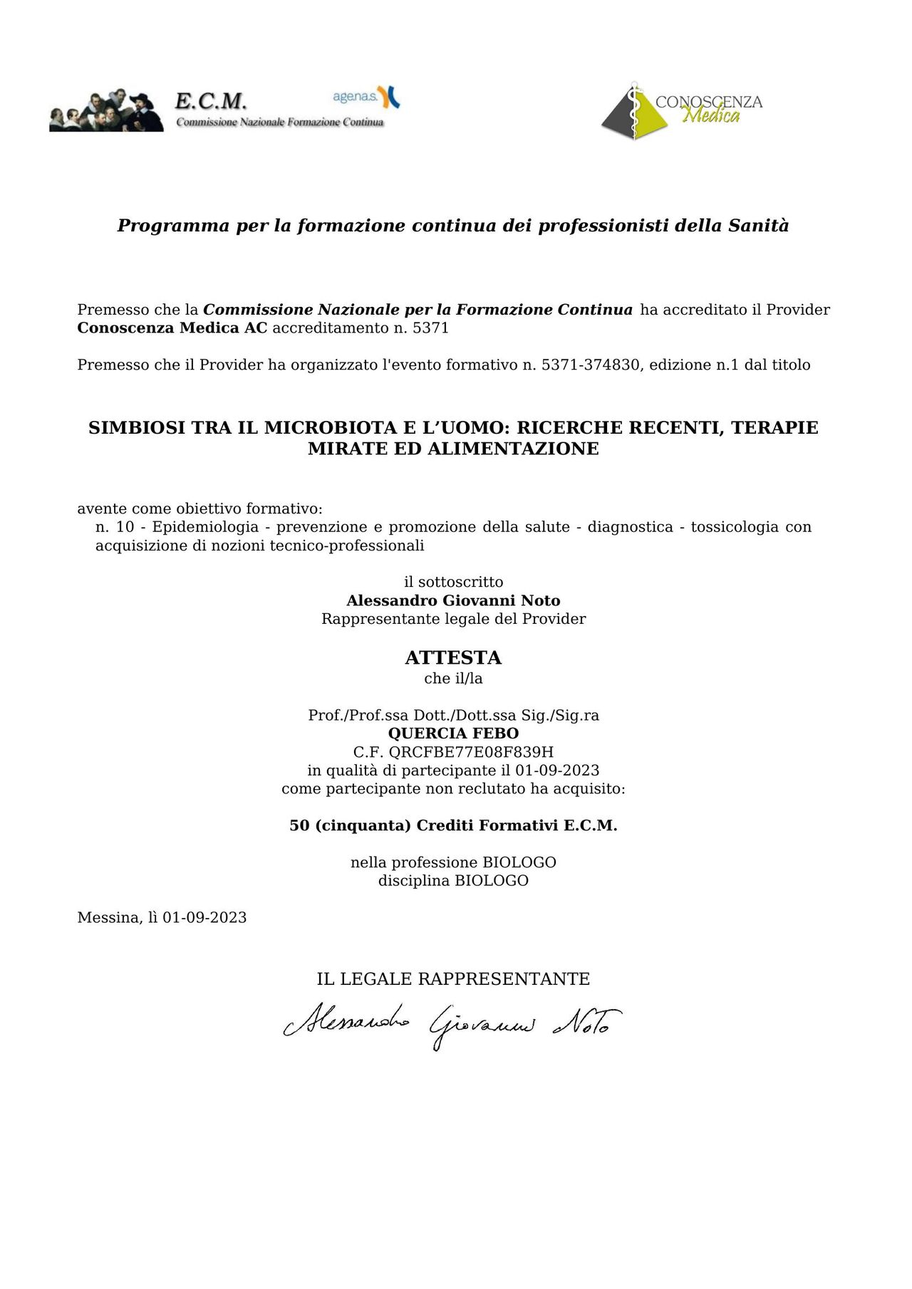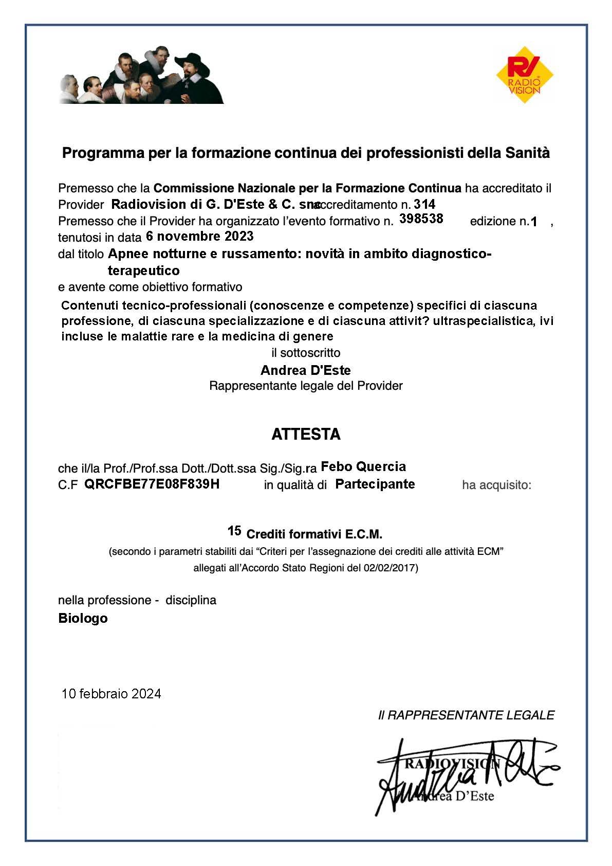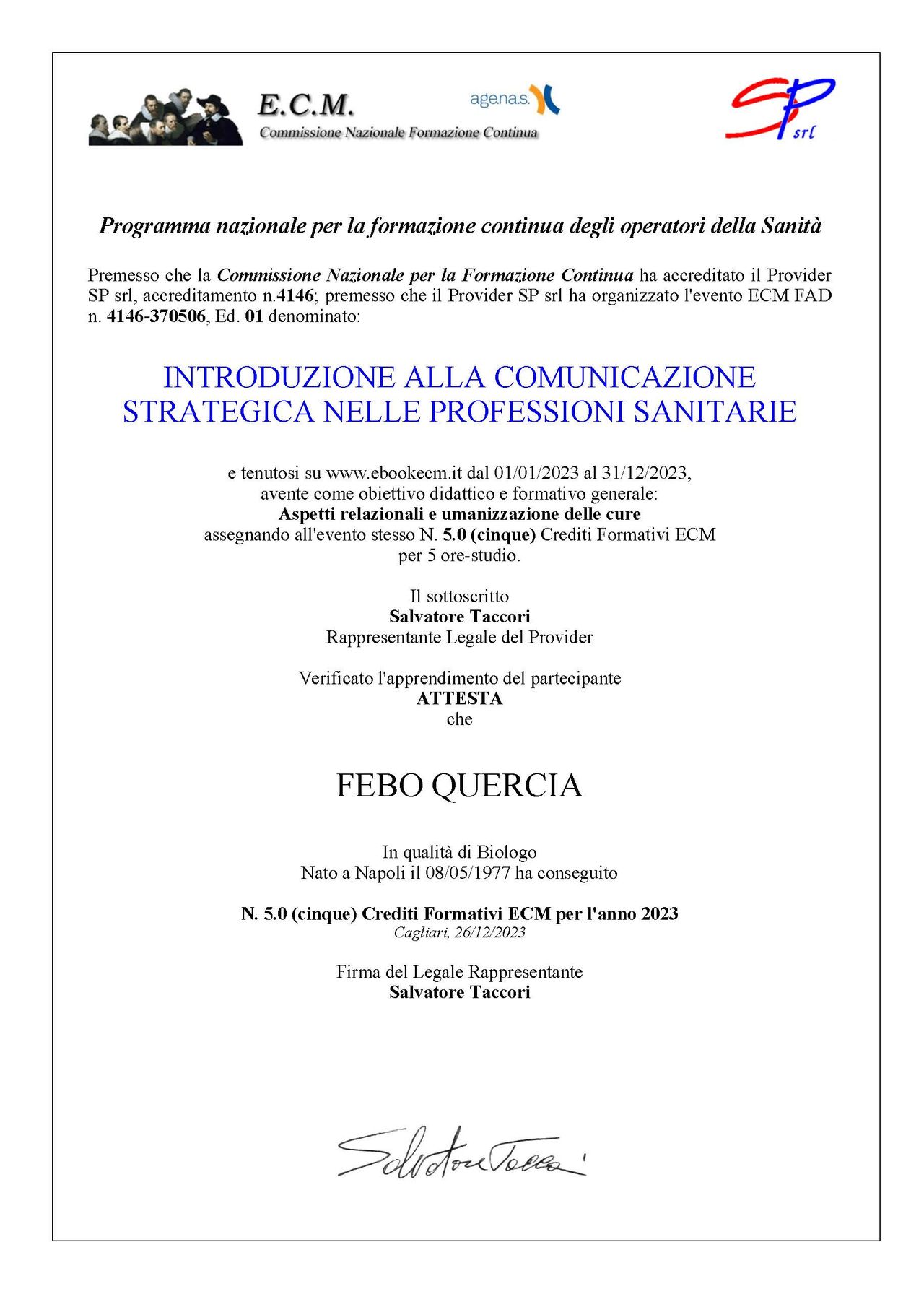 Il dottor Febo Quercia mi segue dal 2016. Mi e' stato diomto aiuto specialmente per I matrimoni dei miei due figlia, Francesca 2017 Davide 2024. Ho perso 10 kili per il matrimonio di Francesca e ben 15 per il matrimonio di Davide. Ora sonó di nuovo in cura perché sonó aumentará ma solo 4 kili e oggi me ho perso 2! Quindi il Dottor Febo Quercia e' un nutrizionista molto valido.