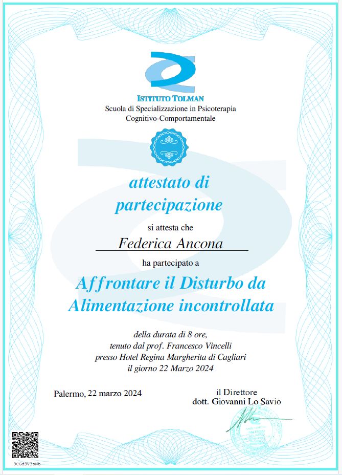 Ho contattato la dottoressa Ancona online, è stata molto disponibile e attenta. Mi sono trovato subito a mio agio, ho percepito empatia e professionalità.