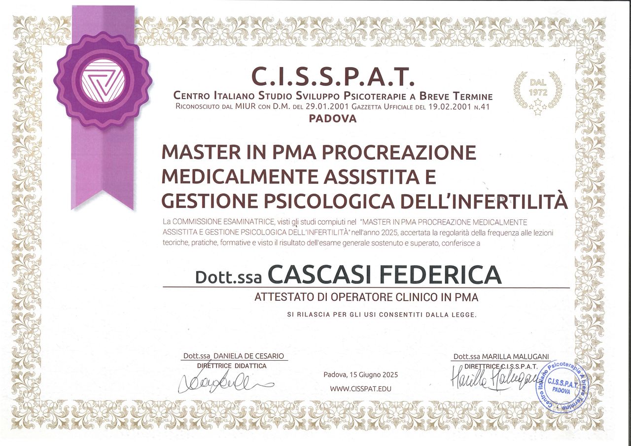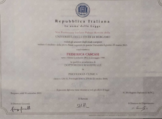 Rimango a sua disposizione Dott.ssa Federica Cascasi