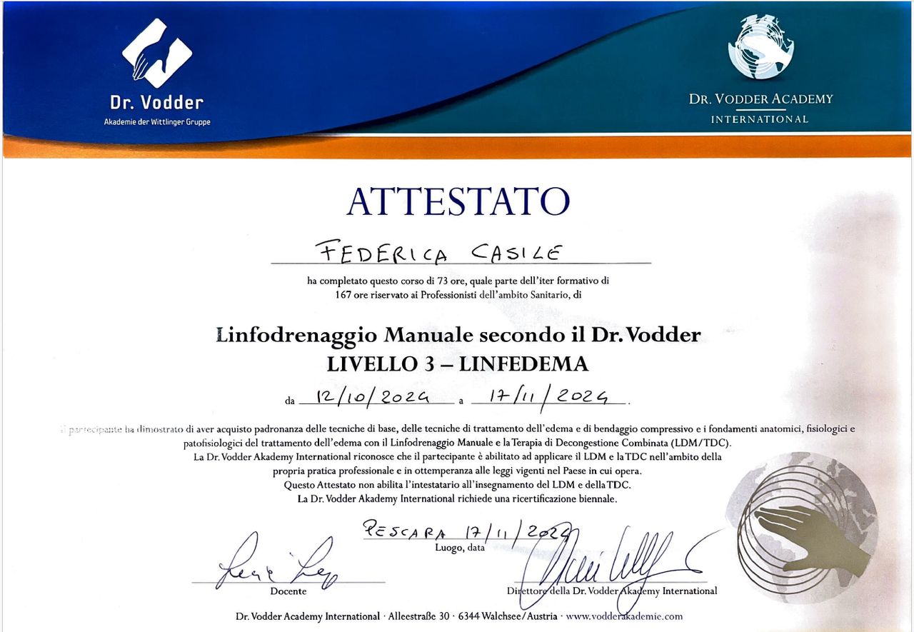 Una nutrizione mirata può ridurre l’infiammazione, migliorare la composizione corporea e sostenere la funzionalità muscolare e linfatica, mentre la fisioterapia aiuta il corpo a ritrovare mobilità, forza e postura, completando il processo di recupero e prevenzione.