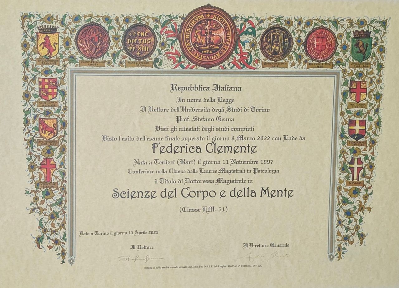 Ho avuto il privilegio di iniziare un percorso con la Dott.ssa Federica Clemente e desidero esprimere la mia sincera gratitudine. La sua profonda empatia e la capacità di ascolto autentico creano un contesto accogliente e sicuro, in cui ci si sente realmente compresi e mai giudicati.
