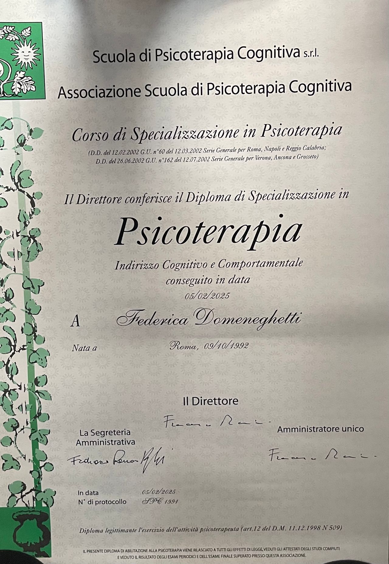 Mi sono trovata molto bene con la psicologa Federica Domeneghetti. Fin dal primo incontro mi ha fatto sentire ascoltata e mai giudicata. Ha saputo guidarmi con professionalità ma anche con delicatezza. È stata un punto di riferimento molto importante per me. Ogni seduta è stata un posto sicuro, dove potevo parlare e sfogarmi, mi faceva a sentire a mio agio in tutto. Consiglio vivamente il suo supporto a chiunque stia cercando un aiuto.