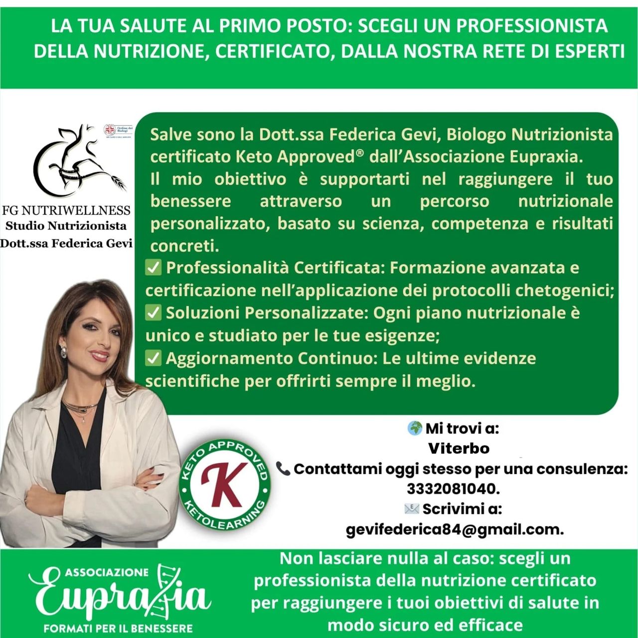 Ho studiato per 15 anni il metabolismo cellulare e mi sono specializzata in biochimica clinica. Sono stata ricercatore universitario conseguendo due abilitazione scientifiche nazionali una in biochimica e l'altra in biologia molecolare clinica e biochima clinica. Sono stata Docente in biologia clinica nutrizionale presso il corso di laurea in scienze dell'alimentazione dell'Università della Tuscia. Sono autrice di oltre 40 pubblicazioni scientifiche su riviste internazionali peer review. Nel 2024 ho conseguito la Certificazione Ketoapproved con la società Eupraxia . Nel 2025 ho frequentato il corso per le stratigrafia e adipometria.
