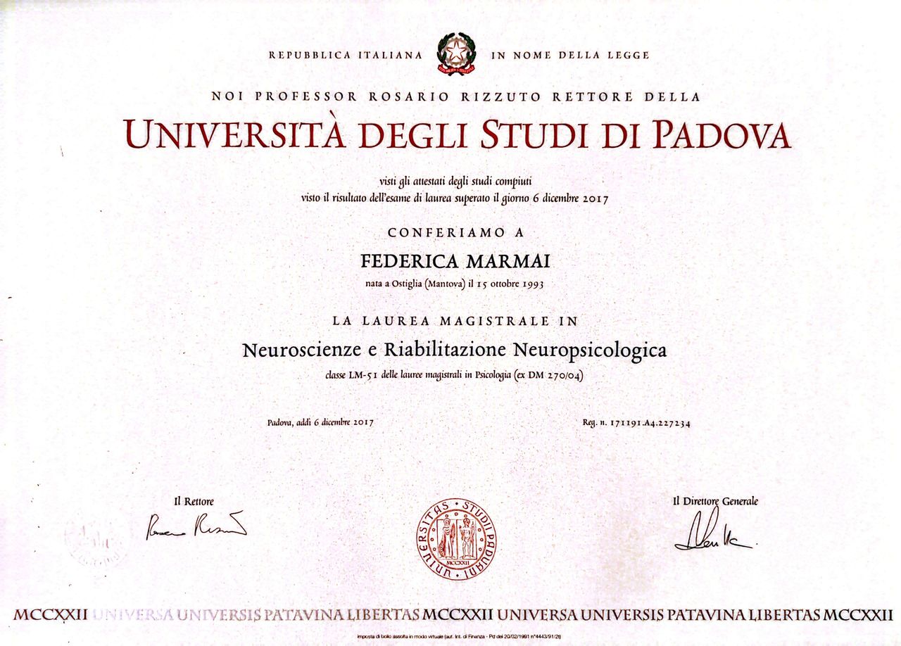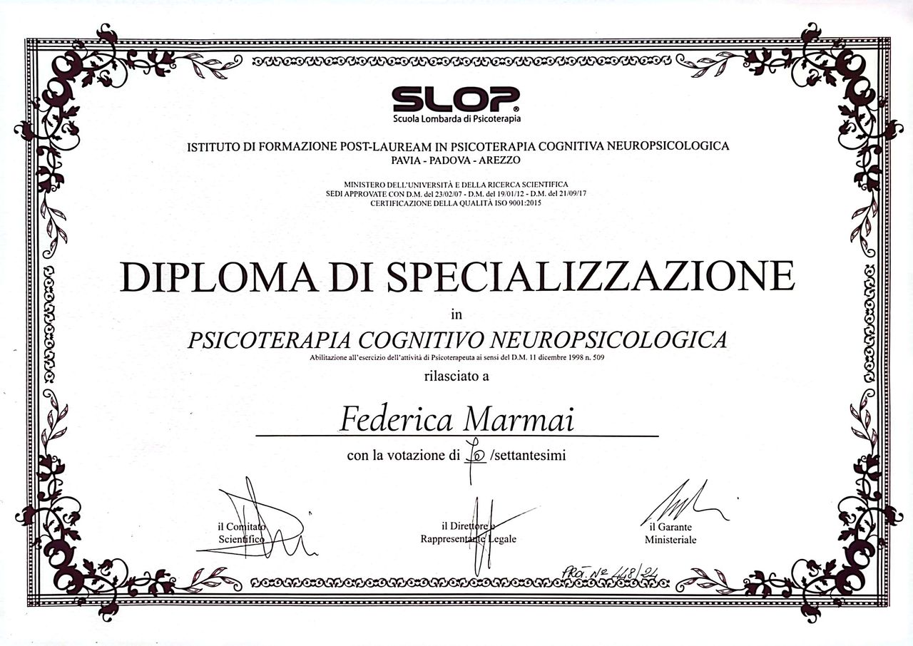 Certamente la consiglio a tutte le persone per avere un aiuto competente!• Federica Marmai • psicoterapia •