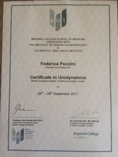 Training in Uroginecologia al St Marys' Hospital di Londra.