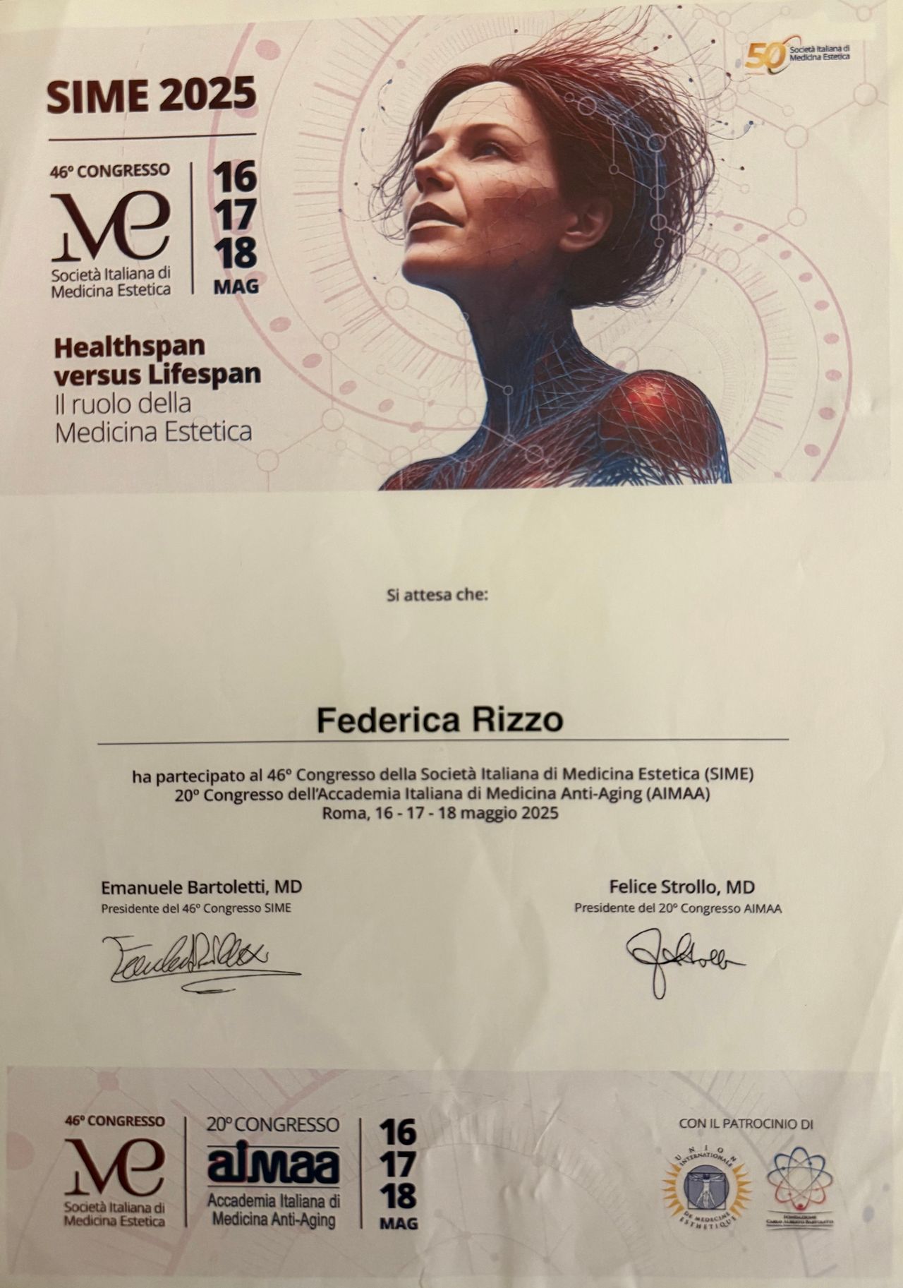 Sono la dottoressa Federica Rizzo, specialista in Igiene e Medicina Preventiva e Medico Estetico. Credo profondamente nella prevenzione come strumento fondamentale per prendersi cura di sé nel tempo. Mi occupo di accompagnare i pazienti in percorsi personalizzati, pensati per preservare nel tempo benessere, equilibrio e qualità della vita.