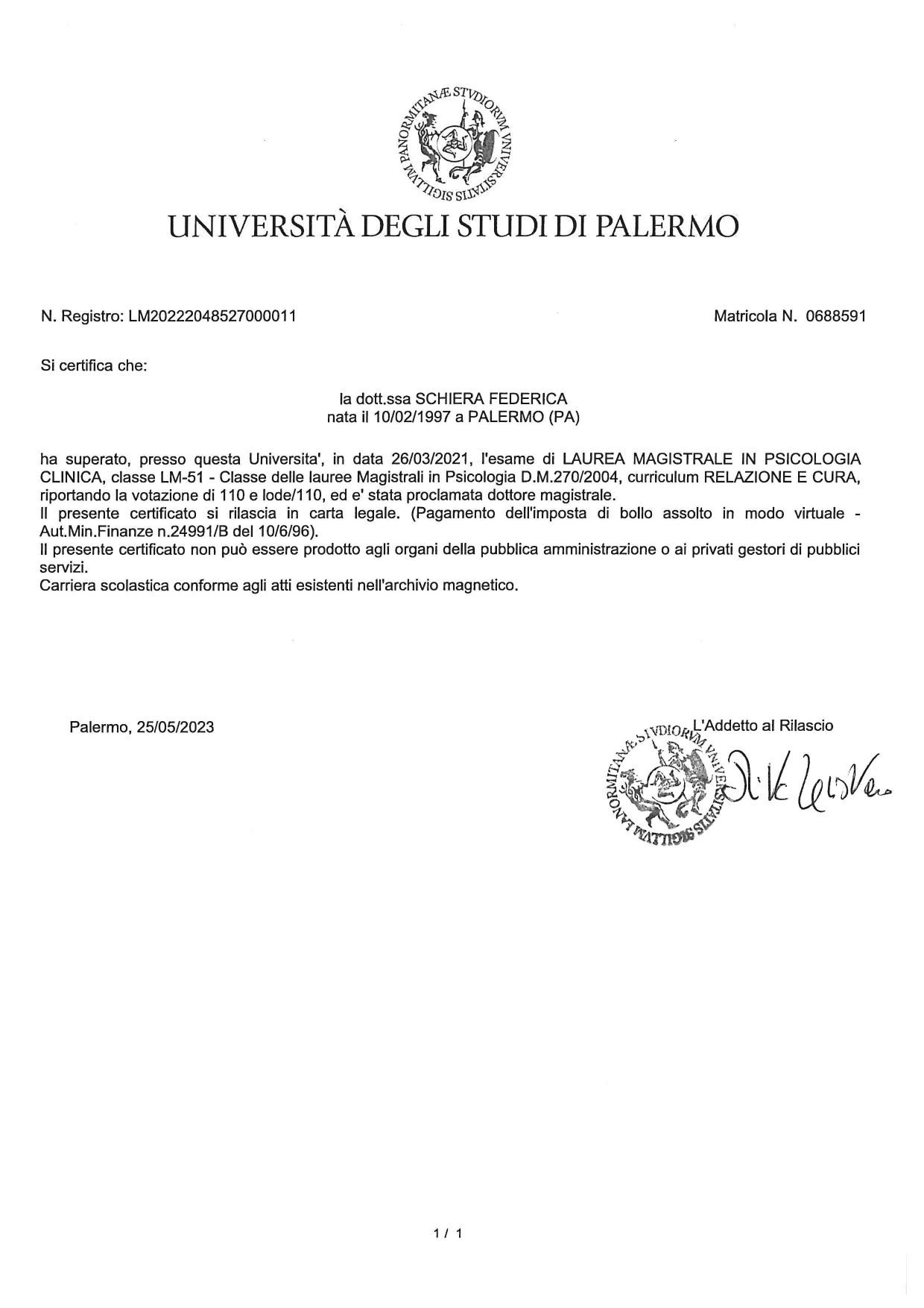 Grazie Dottoressa Schiera per la sua competenza e professionalità.• Notarbartolo • colloquio psicologico individuale •
