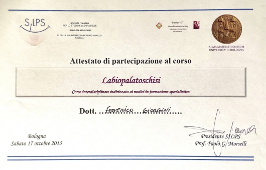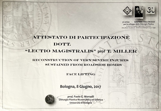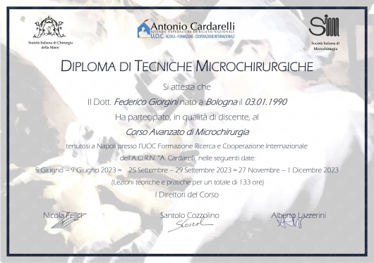 5 anni di formazione e lavoro presso la U.O. di Chirurgia Plastica del Policlinico Sant’Orsola di Bologna – Direttore Dr. Riccardo Cipriani.