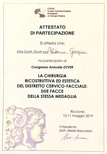 Specializzazione in Chirurgia Plastica Ricostruttiva ed Estetica con una tesi sulla microchirurgia della mammella, voto 110 e Lode.