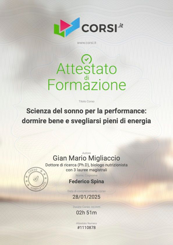 Sono Federico Spina, un Biologo Nutrizionista specializzato in Psico-Neuro-Endocrino-Immunologia (PNEI). La mia missione è guidarti verso un benessere ottimale attraverso un approccio personalizzato e integrato che considera ogni aspetto del tuo essere.