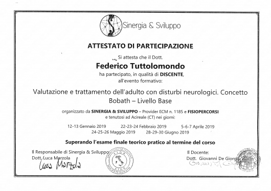 Nel 2019 mi sono specializzato nel trattamento dei pazienti in fase acuta e post-acuta con problematiche neurologiche secondo il concetto Bobath®.