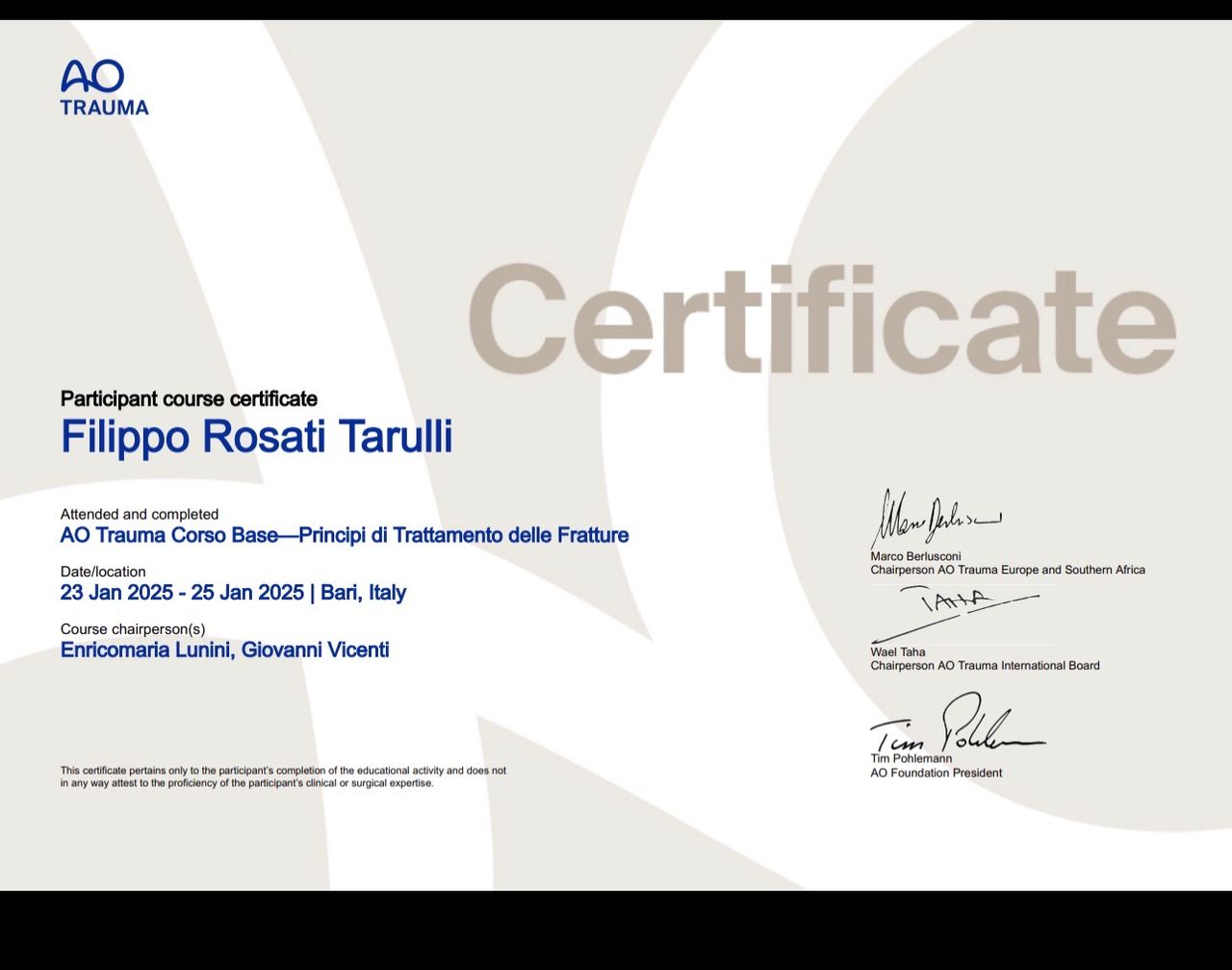Specialista in Chirurgia Ortopedica, Protesica e Traumatologia