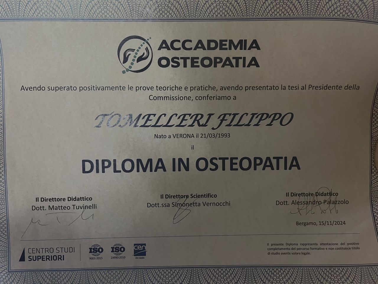 Sono un Osteopata diplomato presso l’Accademia di Osteopatia di Brescia, laureato in Scienze Motorie e in possesso dell’attestato di Massoterapia MCB. Ho scelto questa professione per aiutare le persone a ritrovare benessere, movimento e qualità di vita, mettendo sempre il paziente al centro del percorso di cura.